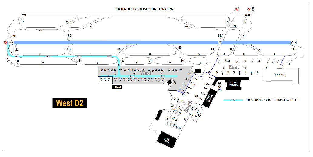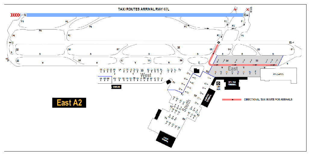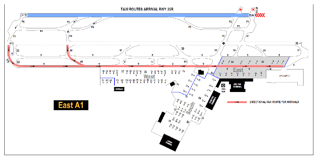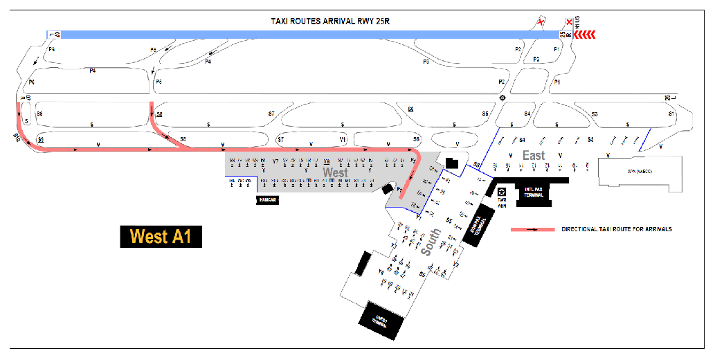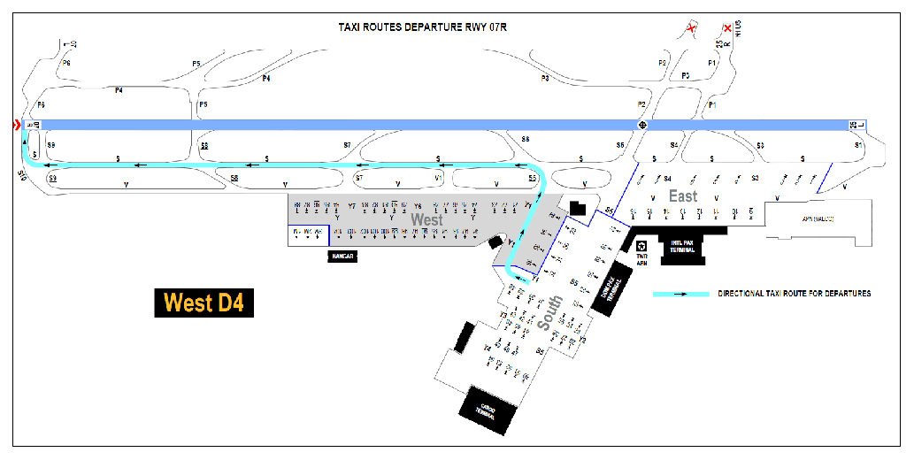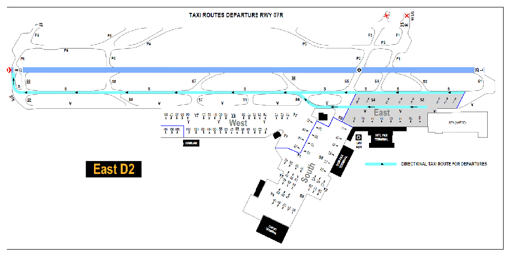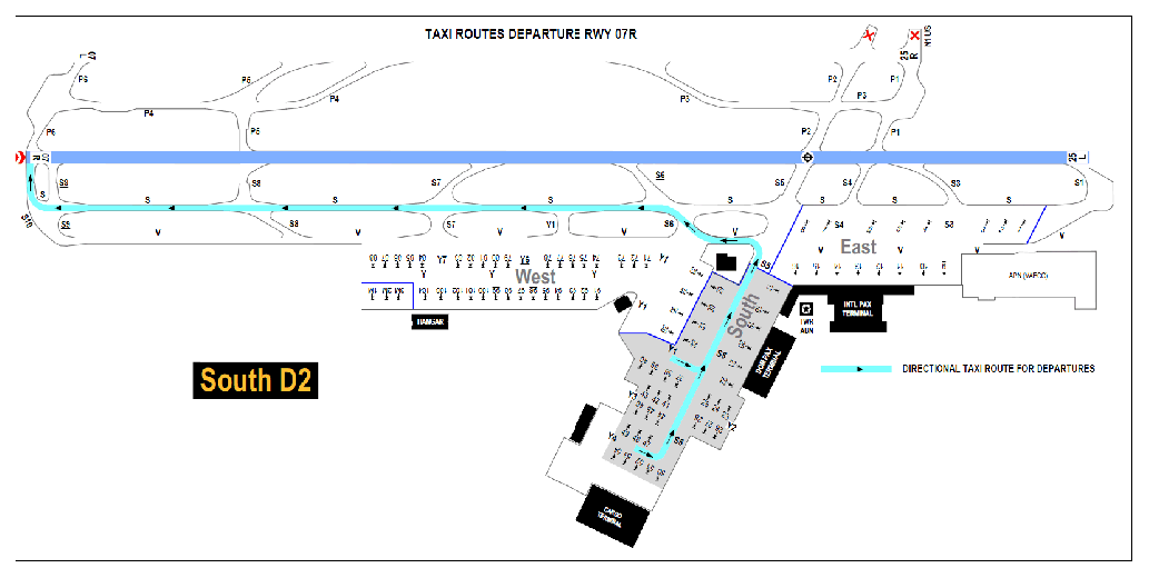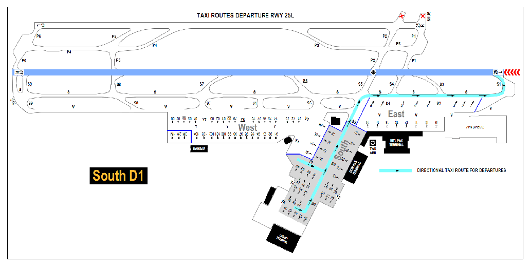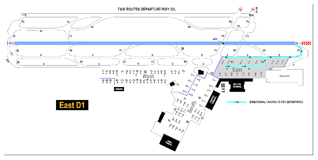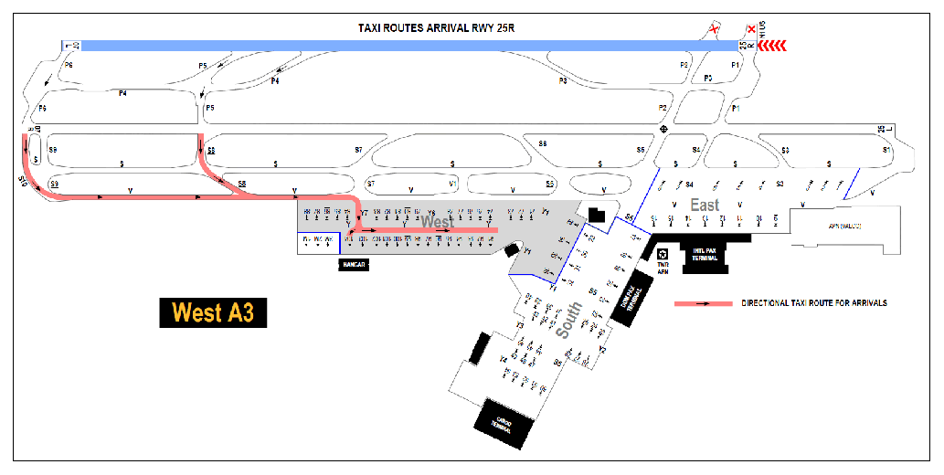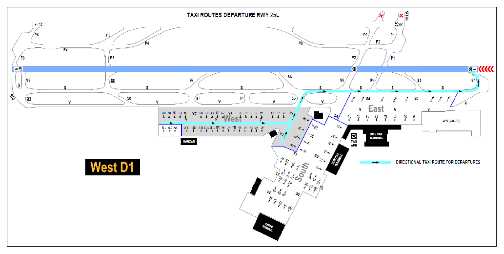 Đèn vạch dừng tại các đường lăn: S1, S3, S4, S5, S6, S7, S8, S9, S10, P1,P2, P3, P4, P5, P6. | |