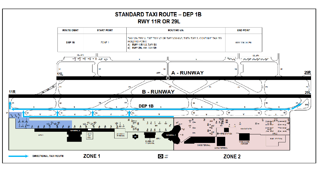 Đường lăn S1 (Đường lăn nối), 23 M, Bê tông xi măng, PCN 98/R/B/W/T Đường lăn S3 (Đường lăn nối), 23 M, Bê tông xi măng, PCN 54/R/C/W/U Đường lăn S4 (Đường lăn thoát nhanh), 28 M, Bê tông xi măng, PCN 97/R/B/W/T Đường lăn S5 (Đường lăn nối), 23 M, Bê tông xi măng, PCN 97/R/B/W/T Đường lăn S6 (Đường lăn nối), 27 M, Bê tông xi măng, PCN 60-70/R/C/W/U Đường lăn S7 (Đường lăn thoát nhanh), 27 M, Bê tông xi măng, PCN 65/R/B/W/T Đường lăn S8(Đường lăn nối), 23 M, Bê tông xi măng, PCN 54/R/C/W/U Đường lăn S9 (Đường lăn nối), 23 M, Bê tông xi măng, PCN 95/R/B/W/T Đường lăn S10 (Đường lăn nối), 23 M, Bê tông xi măng, PCN 95/R/B/W/T Đường lăn V (Đường lăn trên sân đỗ):