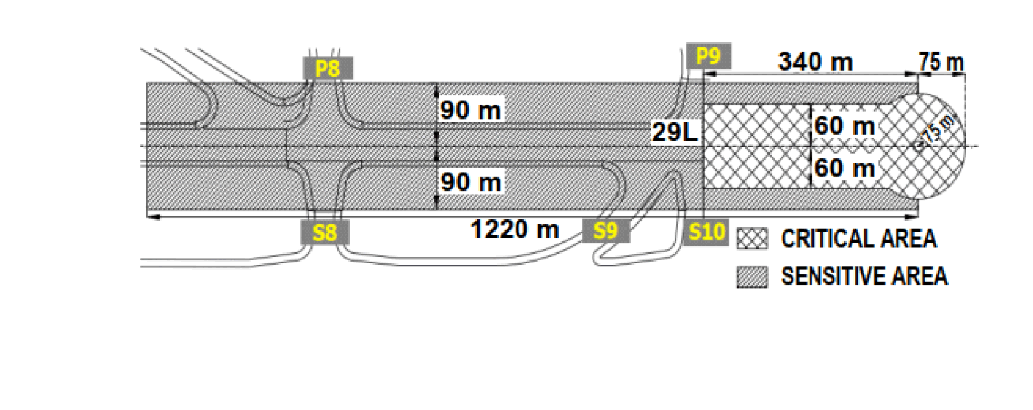 Sơn kẻ dấu hiệu: Ký hiệu, ngưỡng, khu chạm bánh, tim, lề và cuối đường CHC. Đèn: Đường CHC 11L/29R và đường CHC 11R/29L: Tim, lề, ngưỡng, cuối đường CHC, chớp nhận dạng ngưỡng đường CHC, chớp tuần tự, vùng chạm bánh. |